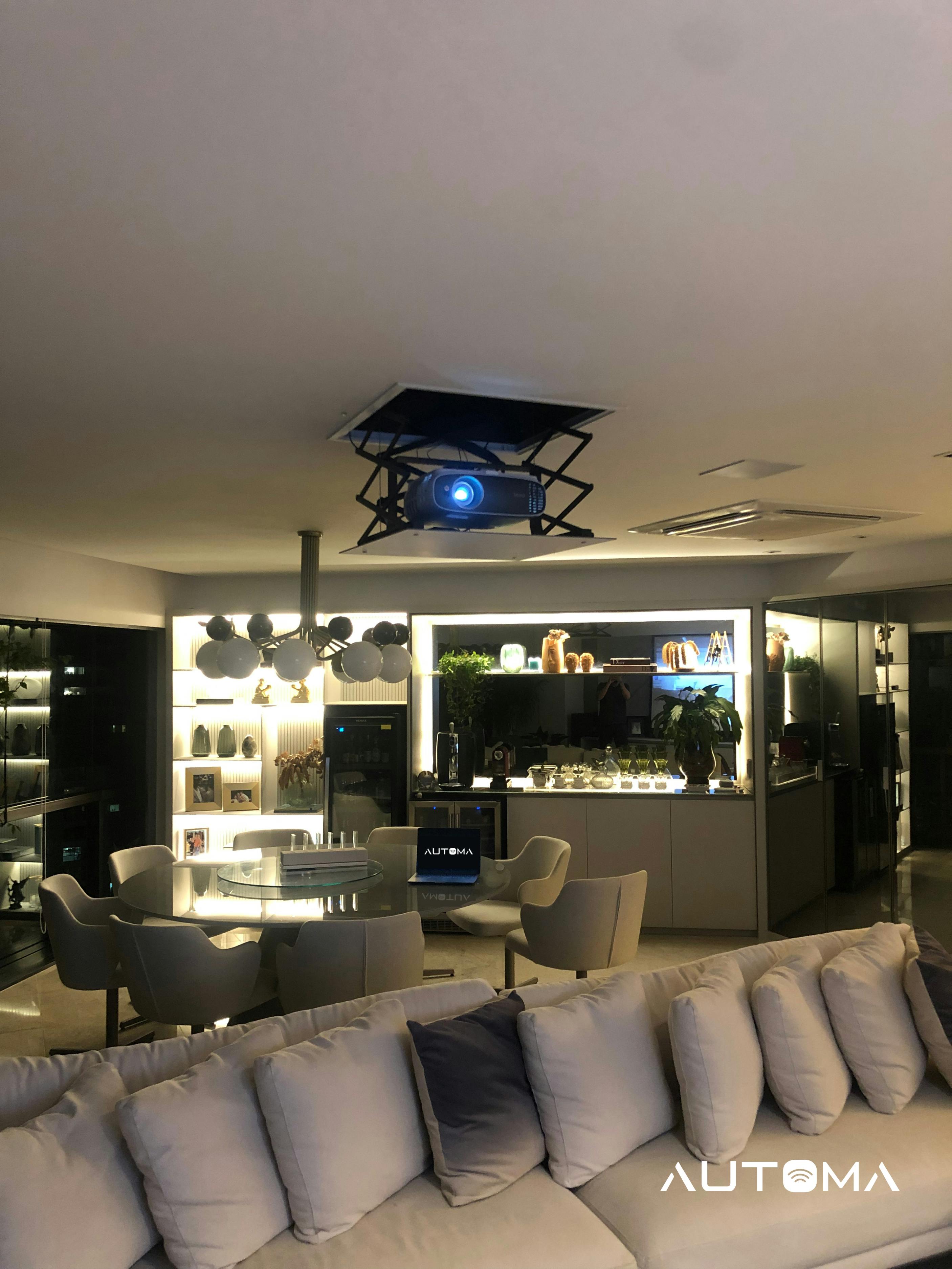 Automação residencial / home theater / tela motorizada + lift + projetor 4K